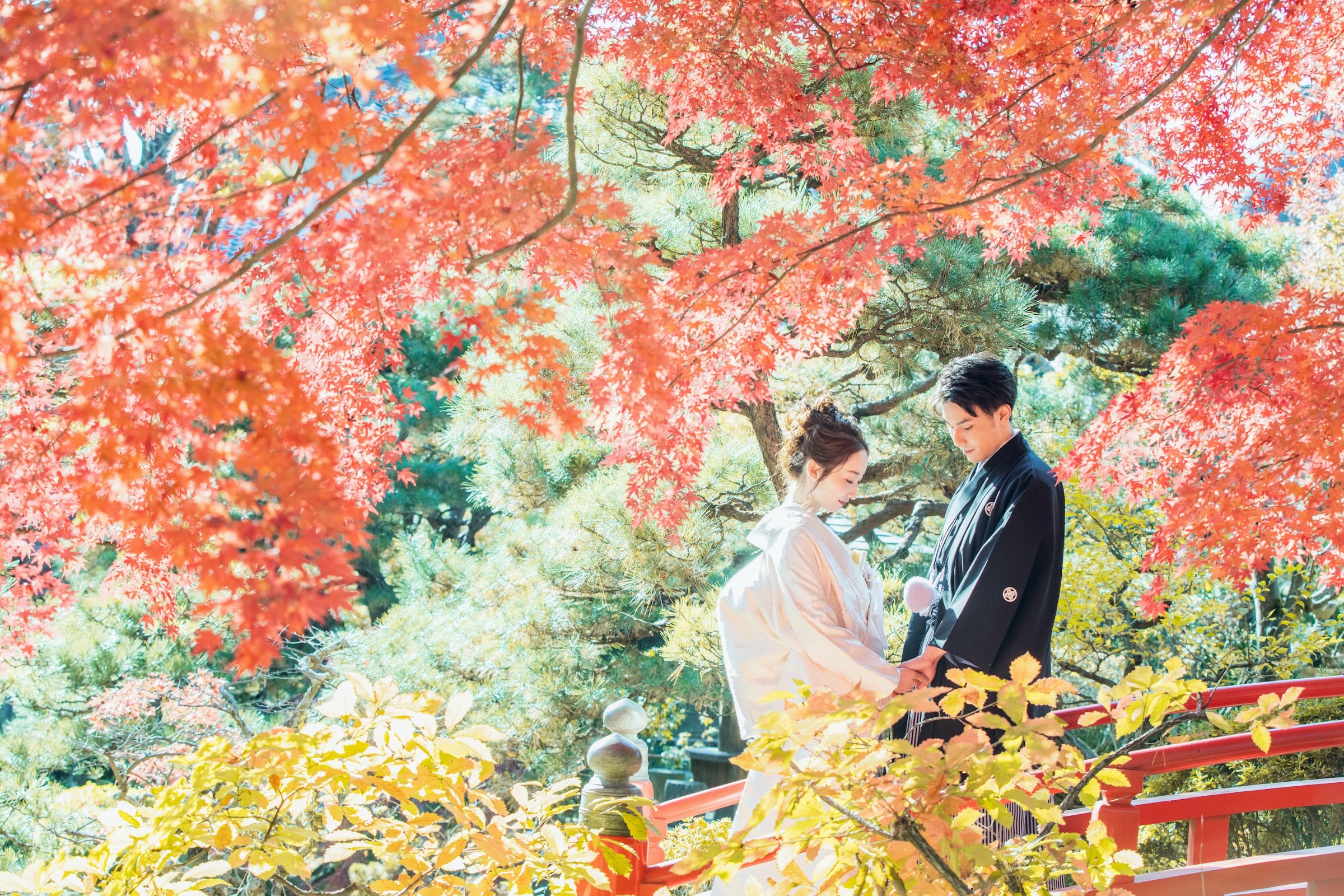 和装にも洋装にも映えるこの季節は、1年のなかで最もフォトジェニック。「結婚写真を残すなら、秋がいちばん」と言われるのも納得の特別な季節です。